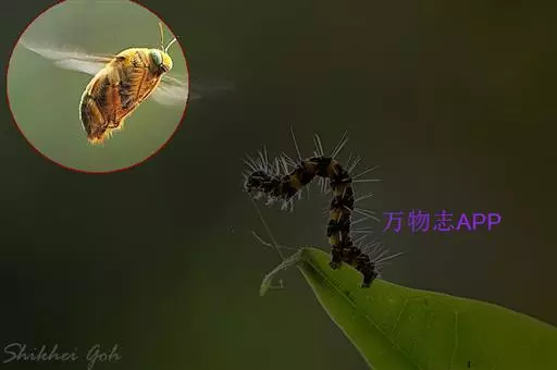 颊突非常大,三角形。翅的远端边缘从无齿或裂片;前翅顶端总是尖的,但非钩状。头宽,无明显簇。触须两性,逐渐陡缩成一个短钩。末端细长,有些几乎是丝状。唇形腭宽,表面末端具有尖或三角形。胸部和腹部宽,扁平;具有侧向和扇尾簇。腹部棘严重壳质化,排列成几行。第一行圆形,除近端段外宽于长。第七腹部胸骨三角形,具有膜质。中胫和后胫长度不同,胫骨中部的刺与刚性鬃毛成梳状。基部梳形至跖骨。后腿的马刺非常不平等。 前叶的静脉R2 + R3和R4不会在末端连接。静脉Rs和M1分别源自细胞上角; M3和Cu1同样从未被缠绕。幼虫绿色或褐色,尾上有蓝色角。