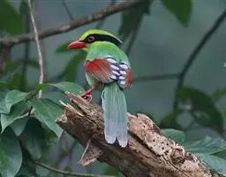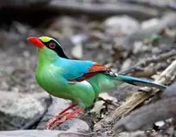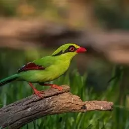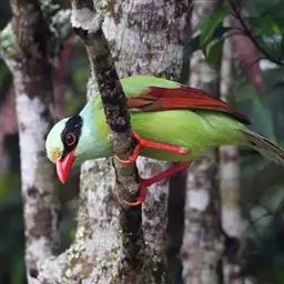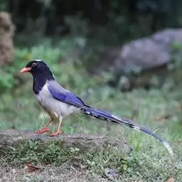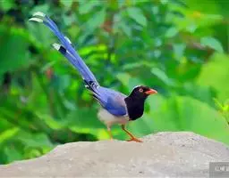 蓝绿鹊:中型鸟类,共有5个亚种。体长36-38厘米。尾长,嘴、脚红色。通体羽色主要为草绿色,…