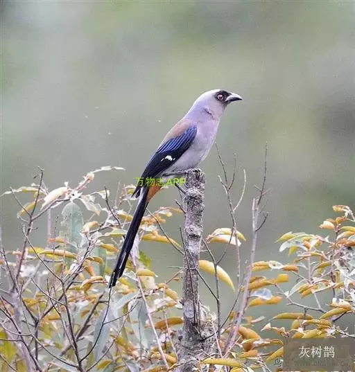 灰树鹊(学名:Dendrocitta formosae)中型鸟类,体长多为31~39厘米。头顶至后枕灰色,其余头部以及颏与喉黑色。背、肩棕褐或灰褐色,腰和尾上覆羽灰白色或白色,翅黑色具白色翅斑,尾黑色,中央尾羽灰色。胸、腹灰色,尾下覆羽栗色。野外特征明显,容易识别。中国还未见有与之相似的种类。