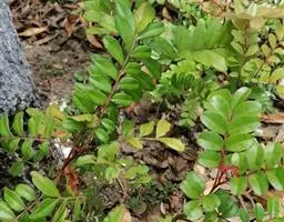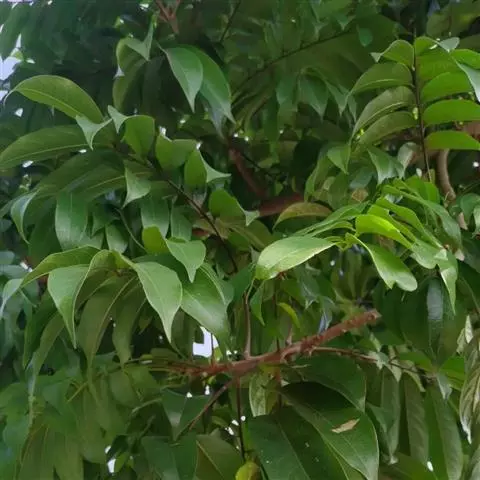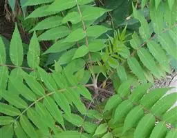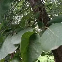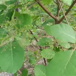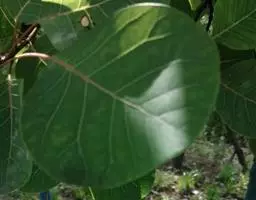 粉背黄栌叶卵圆形,较大,长3.5-10厘米,宽2.5-7.5厘米,无毛,但叶背显著被白粉;叶柄较长,…