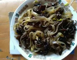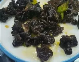 4、锅中剩少许油,把豆豉放进去煸一下,加开水调稀,勾芡。淋在尖椒上即可。