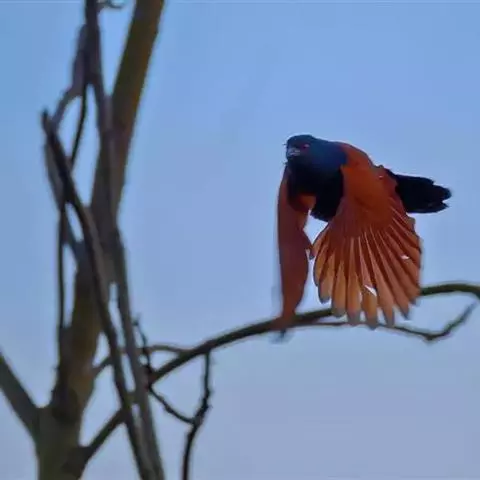褐翅鸦鹃,是鹃形目鸦鹃科鸦鹃属的鸟类。褐翅鸦鹃的身体为黑色;头颈和胸带蓝紫色金属光泽并具黑亮的羽干纹,…