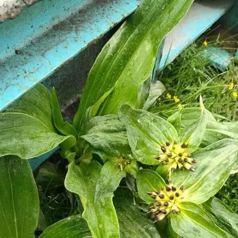 4、斑枯病:每年6月末到10月发病。此病是危害龙胆草严重的病害。患病叶片出现棕褐色圆形或椭圆形病斑,病斑中央颜色稍浅,边缘褐色,病斑两面处有黑小点,是病原菌的子实体分生孢子器,严重时病斑汇合,叶片枯死,最后导致整株枯萎。6月初至6月中旬用具65%代森锰锌400-500倍液每5-7天喷一次,从6月中旬至于10月用代森锰锌300倍液体3-5天喷一次。也可用于50%多菌灵400倍液体3-5天喷一次与代森锰锌交替使用。