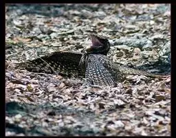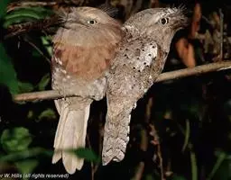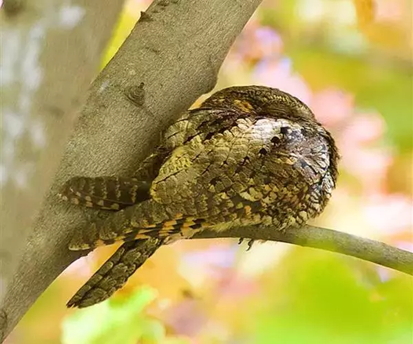 由于脚部力量不足,三声夜鹰不栖息在树上。白天,它不是蹲坐在地上,就是纵躺在大树枝上。