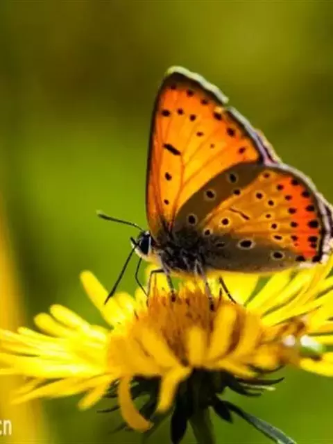 橙灰蝶Lycaena dispar Hauorth,鳞翅目、灰蝶科。这类蝴蝶雌雄异型,雄蝶前翅翅面…