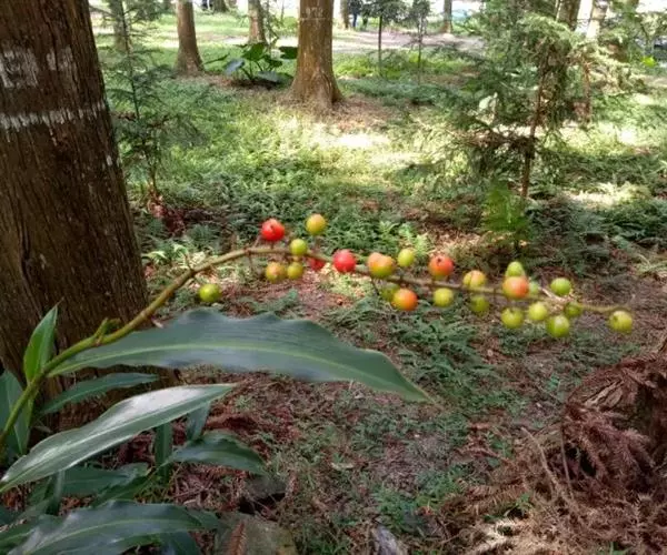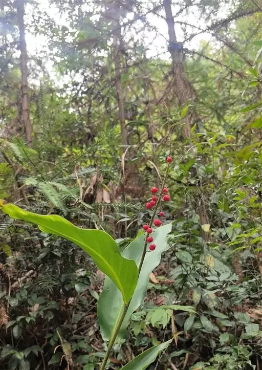 移栽定植:沙播种子约4个月后出苗,出苗率大于90%,且出苗整齐。出苗后2个月左右(翌年5-6月)、当幼苗长出2片约4厘米的叶片后,及时移栽至有散射光的疏林下,株行距50厘米×50厘米,栽后覆土压实,浇足定根水,移栽及易成活。