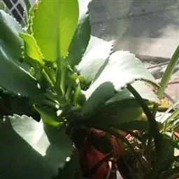 叶子表面宽厚,富肉质感且带有磨纱质感,看像石头质地;开红色小花,生于植株顶部,倒伞形密生,形状像花…