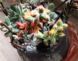 红缘莲花掌属蔷薇目、景天科植物,原产大西洋的加那利群岛。质厚,蓝绿色,被白霜,叶缘红褐色。聚伞花序,…