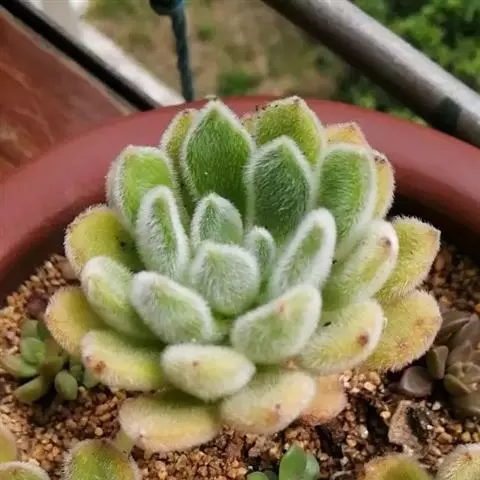 毛茸茸的毛、半边锯齿状的叶,缺口会再冒出小芽,夏型,喜光照、可直晒、耐热,适合春、秋。…