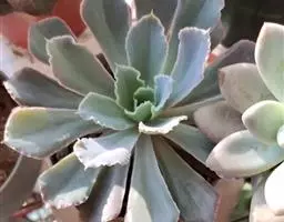 蓝石莲是景天科、拟石莲花属的多肉植物。茎部粗壮,成熟植株茎部木质化。叶片莲座型密集排列,株径不会很大,…