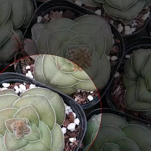 大和锦是景天科拟石莲花属的多肉植物。肉质叶排成紧密的莲座状,广卵形至散三角卵形,背面突起呈龙骨状,…