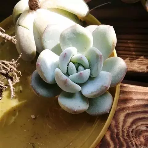 小红衣是景天科、拟石莲花属的一种多肉植物。叶片匙形,扁平细长,叶表具白粉,有明显的半透明边缘,…