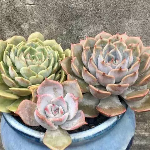 薄叶蓝鸟 叶片蓝绿色,叶尖红色,带粉,花型紧凑,非常漂亮。原产于墨西哥,现世界各地均有栽培。
