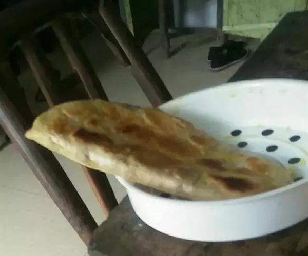 传说唐太宗李世民某日在长安城内微服私访,行至一闹市小巷,见一小铺前人头攒动熙熙攘攘,男女老幼蜿蜒排队竟有百十人之众。不时有三三两两的行人从身边走过,手中都提着金黄色的面饼,阵阵异香扑鼻而来,忙上前询问,原来众人是在购买一名为牛肉饼的小食。于是乎屈尊随众人排队一探究竟,终于等到前面买了两个,顾不得饼热烫嘴,忙把一个塞入口中,只觉表皮酥脆碰牙即碎,饼内却柔嫩异常,油面皮香味加麻麻的葱花牛肉,把个太宗吃得眉开眼笑。待一个吃完,这才定下神来看手中的第二个饼,只见其圆如满月,色似金琼,饼中螺旋纹优美如涟漪,心中直叹真乃尤物也。太宗念念不忘这家的牛肉饼,常跑出宫来尝鲜……