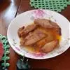 3、把牛肉饼放到盘子里,跟糖醋酱一起端出。