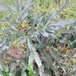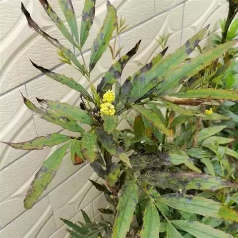常绿 灌木,高1.5-4米。叶长圆形至长圆状椭圆形,长20-70厘米,宽10-22厘米,薄纸质至薄革质,具4-9对无柄小叶,最下一对小叶距叶柄基部约1厘米,上面暗绿色,稍有光泽,网脉扁平,显著,背面黄绿色,叶脉明显隆起,网脉不显,叶轴粗约3-5毫米,节间长2.5-11厘米,从基部向顶端渐次增长;小叶无柄,狭卵形、长圆状卵形至狭长圆状卵形或椭圆状披针形,从基部向顶端叶长渐增,但叶宽渐减;最下一对小叶长1. 5-3厘米,宽1.2-2厘米,其余小叶长4.5-16厘米,宽1.5-5厘米,基部圆形,偏斜,每边具2-12刺锯齿,先端渐尖或急尖;有时顶生小叶较大,长达18厘米,宽4厘米,具小叶柄,长1-3厘米。