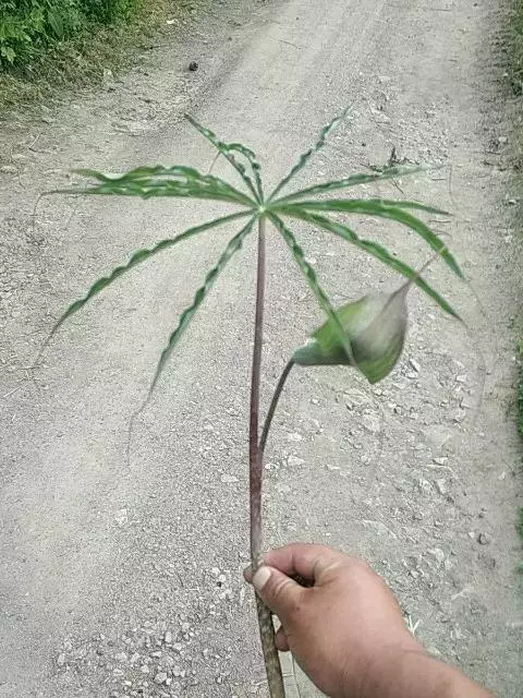 黄苞南星 Schott)是天南星科、天南星属植物,块茎近球形,鳞叶锐尖,叶片鸟足状分裂,…
