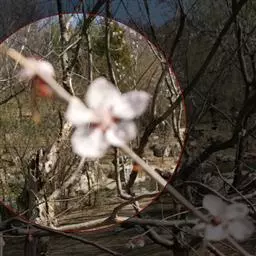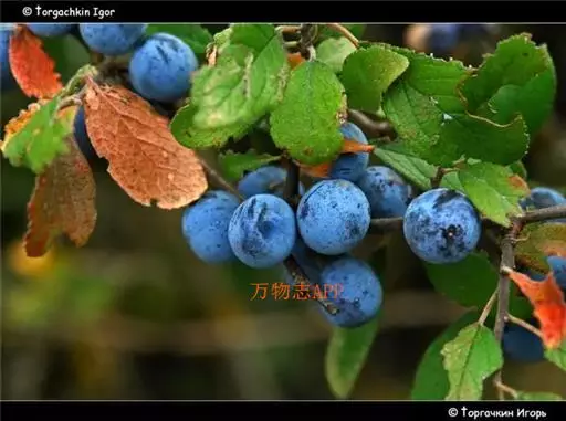 花单生,先于叶开放;花梗长6-8(15)毫米,直立,无毛或微被柔毛;花直径1-1,5厘米;萼筒钟状,与萼片近等长;萼片三角状卵形,先端急尖,边缘有细齿,萼筒和萼片外面无毛,内面近无毛;花瓣白色,长圆形,先端圆钝,基部楔形,有带浅紫色脉纹,着生在萼筒周围;雄蕊20-25,排成紧密不规则2轮,着生在花盘边缘,花盘圆盘形,雄蕊与花瓣近等长;雌蕊1,心皮无毛,柱头头状,花柱比雄蕊稍长或近等长。核果球形、广椭圆形或圆锥形,先端急尖,直径1-1.5厘米,黑色,具浅蓝色果粉,果肉绿色;核淡褐色,卵形或广椭圆形,稍扁平,先端渐尖,具起伏不平皱纹。花期4月,果期8月。