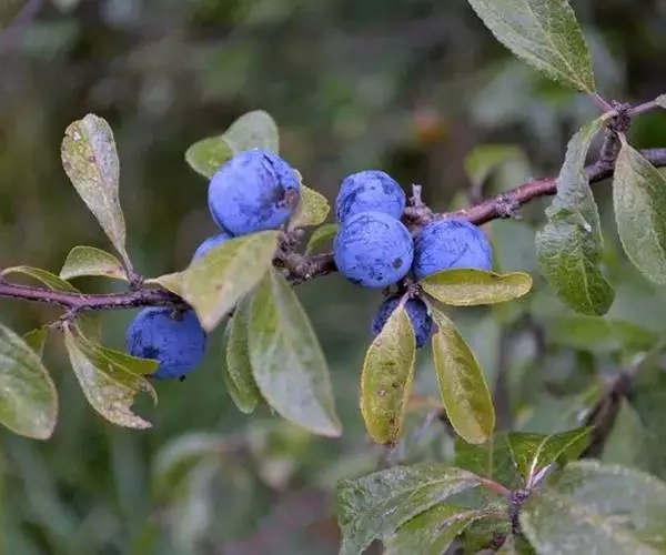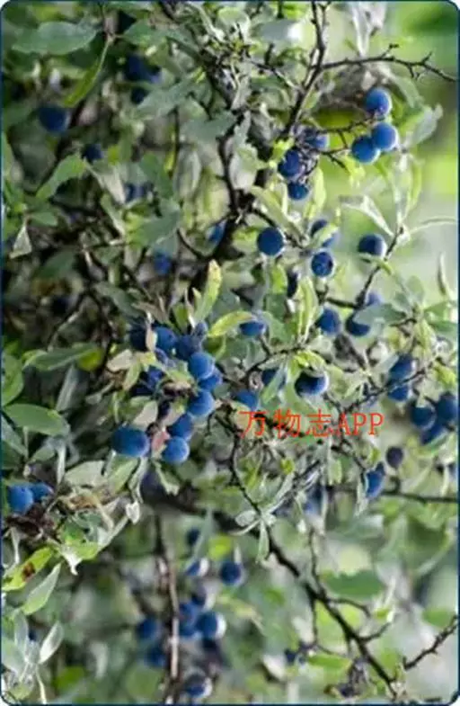 黑刺李(学名:Prunus spinosa L.)是蔷薇科、李属灌木,极少乔木,高可达8米;树皮深灰褐色,多分枝,多刺;冬芽卵圆形,先端圆钝,紫红色,有数枚覆瓦状排列鳞片,叶片长圆倒卵形或椭圆状卵形,稀长圆形,上面暗绿色,粗糙,下面黄绿色,托叶膜质,披针形,花单生,先于叶开放;花梗直立,萼筒钟状,萼片三角状卵形,花瓣白色,长圆形,着生在萼筒周围;雄蕊着生在花盘边缘,花盘圆盘形,雄蕊与花瓣近等长;核果球形、广椭圆形或圆锥形,黑色,具浅蓝色果粉,果肉绿色;核淡褐色,卵形或广椭圆形,稍扁平,4月开花,8月结果。