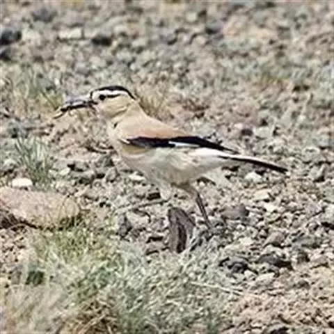 黑尾地鸦:体羽沙褐色,额、头顶以至后颈呈发金属紫蓝辉的黑色。头侧乳黄色。整个背面,包括两肩葡萄褐色。…