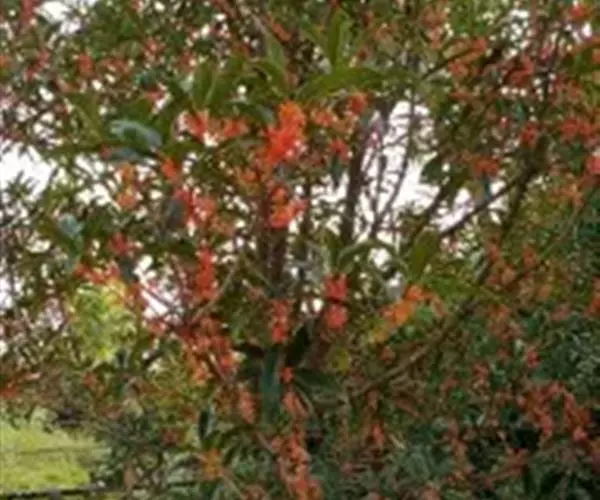 丹桂是桂花中的名贵品种,花红色,单瓣,秋季开花,香味浓郁。它与红豆、方竹、绿萼梅合称雁山四宝。广泛用于观赏、绿化,有着广阔的开发前景。
