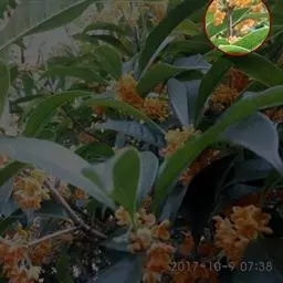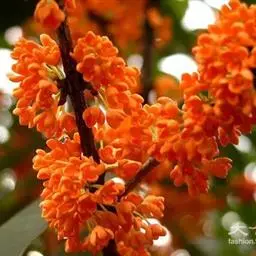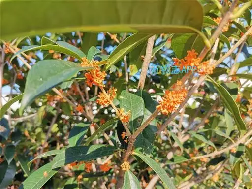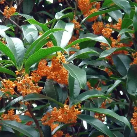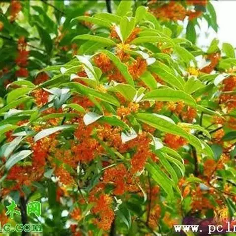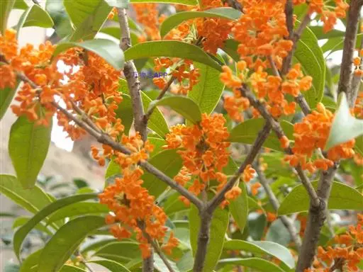 丹桂,又名:木犀、桂花;拉丁文名:Osmanthus fragrans (Thunb.) Lour. 捩花目、木犀科、木犀属常绿乔木,雌雄异株,叶长椭圆形,开橘红色花,香味很浓,树冠圆球形,枝条峭立,紧密度中等。树皮浅灰色,皮孔圆或椭圆形,数量中等,是珍贵的观赏植物。