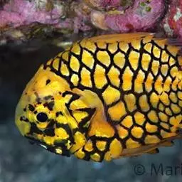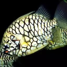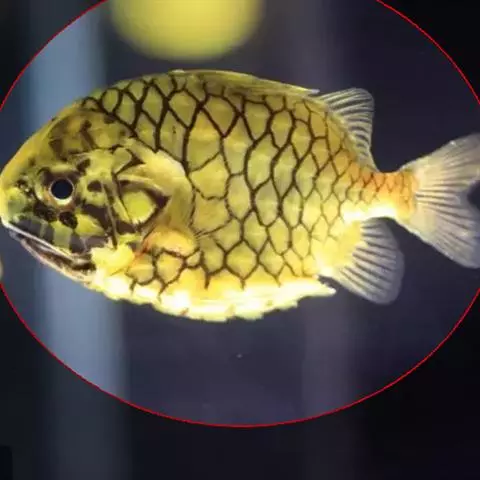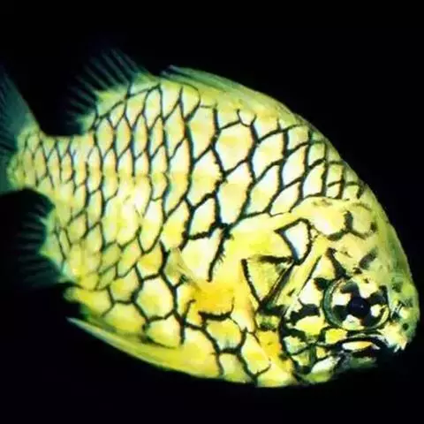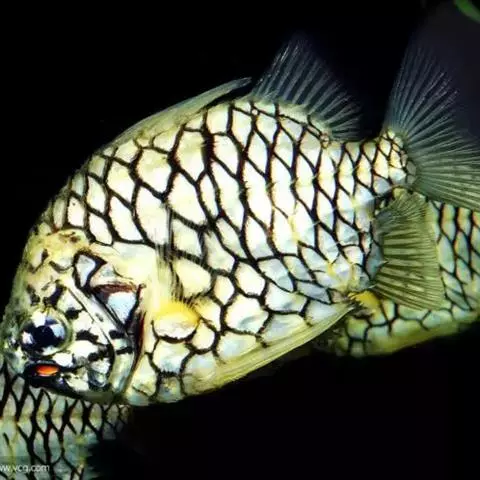松球鱼为暖水性底层海鱼,因体被大栉鳞、形似松果球而得名。在它头部的发光器官中与其共生着费氏弧菌。当细菌的浓度达到一定程度,便开始发光,便于在黑暗的海洋中寻找并捕食猎物。松球鱼(pinecone fish)又叫凤梨鱼(Pineapple Fish),是金眼鲷目中最漂亮的一种观赏鱼类。