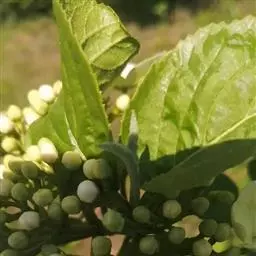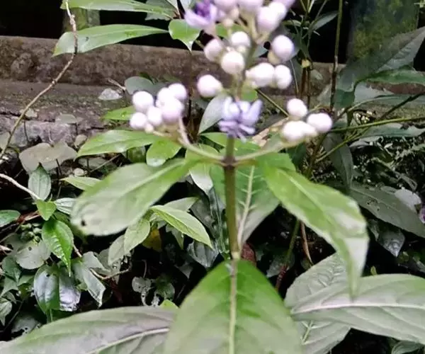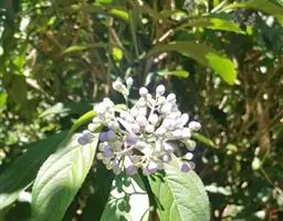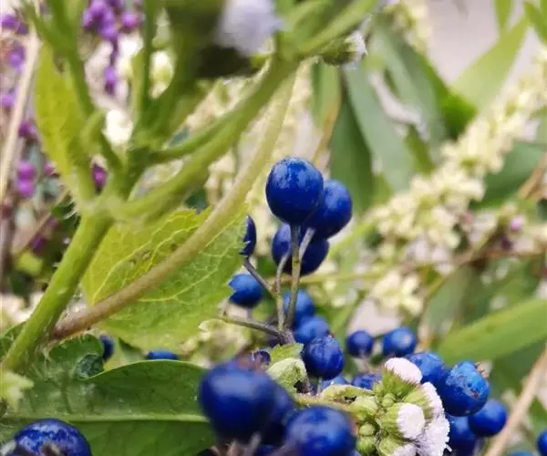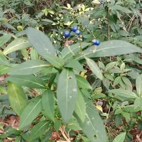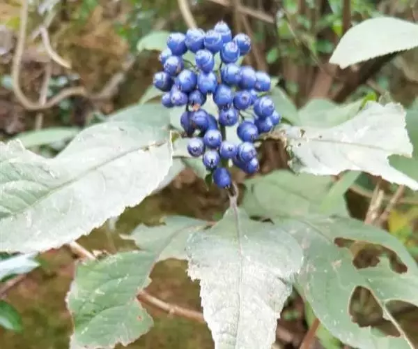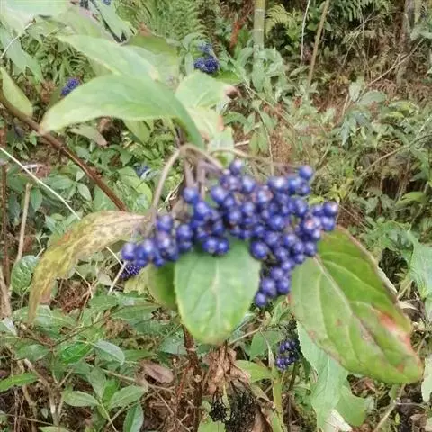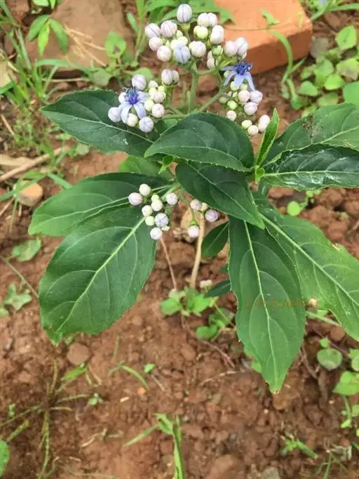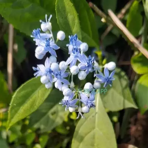 伞房状圆锥花序顶生,有时叶腋有侧生花序,直径3-20厘米,花蓝色或白色;花蕾倒卵形,盛开时直径6-10毫米;花梗长3-5毫米;花萼倒圆锥形,4-6裂;裂片阔三角形,急尖,无毛或被毛;花瓣长圆状椭圆形,稍肉质,花后反折;雄蕊10-20枚,一半与花瓣对生,花丝线形,扁平,初与花瓣合生,后分离,花药椭圆形;花柱4(5-6),棒状,柱头长圆形,子房3/4下位。浆果直径3-7毫米,蓝色,干时黑色;种子长约1毫米,具网纹。花期2-4月,果期5-8月。