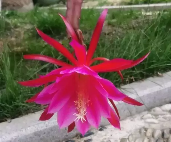 令箭荷花(Nopalxochia ackermannii Kunth),为仙人掌科多年生常青附生类植物,因其茎扁平呈披针形,形似令箭,花似睡莲,故名令箭荷花。