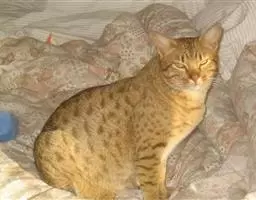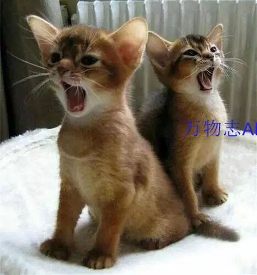 大约在1860年,古埃及猫被一位英国军官从阿比西尼亚(今埃塞俄比亚)带回英国。经过许多养猫爱好者精心培育完善,使其迅速传播开来。但直到1929年才建立了此类猫的品种标准,既而成立了阿比西尼亚猫爱好者俱乐部。由于第二次世界大战以及1960年和1970年猫白血病的大流行,几乎使此猫在英国绝迹。后来又从国外引进,经过精心培育,形成了今天的阿比西尼亚猫。改良过的阿比西尼亚猫,身体修长,四肢高而细,尾长而尖,头略尖,眼大而圆,眼睛为金黄色、绿色或淡褐色,耳朵大且直力,耳内长毛。毛短,毛色漂亮,最常见的毛色是黄褐色,间有黑色杂毛。被毛细密,绒毛层较发达,富有弹性。这种猫喜欢独居,善爬树,体态轻盈,性情温和,很通人性,是非常理想的伴侣。值得一提的是阿比西尼亚猫的那宛如小狮子似的外表显得它更加可爱,而且非常聪明,叫声小而悦耳。无论你住在公寓还是家属楼都可以放心的饲养这种猫。