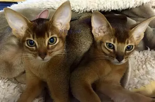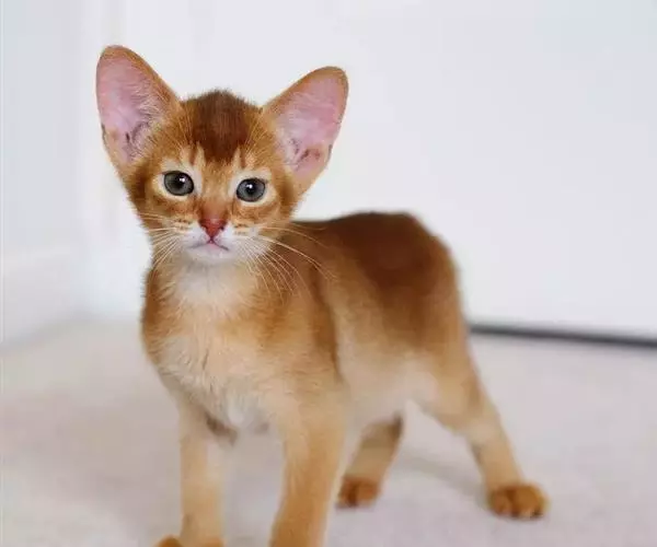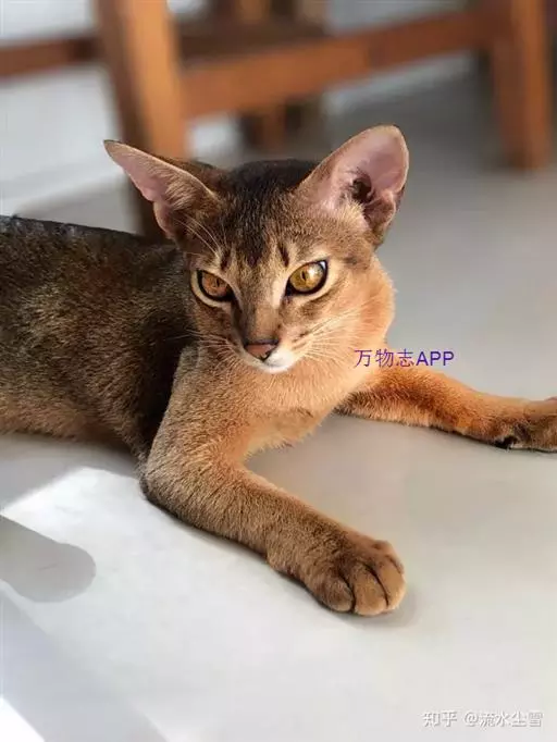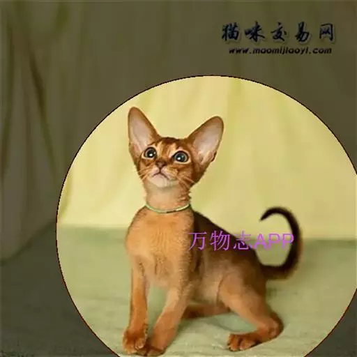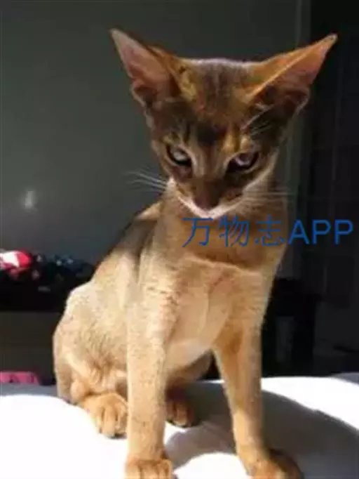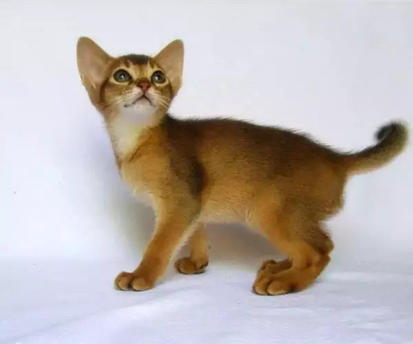 阿比西尼亚猫(英文名:Abyssinian)又称埃塞俄比亚猫、又因步态优美被誉为芭蕾舞猫。而阿比西尼亚猫的毛色同野兔相像,英国人亦称它为兔猫或球猫。阿比西尼亚猫历史悠久,传说现代的阿比西尼亚猫是古埃及被崇拜为“神圣之物”的古埃及猫的后裔。在保存下来的古埃及神猫的木乃伊中,有一种血红色的猫与它十分相像,因此,许多人认为它是古埃及神猫的直系后代。由于它的整体外形、毛色、直立耳均同非洲山猫接近,亦有人认为它源于非洲山猫。阿比西尼亚猫身躯柔软灵活,其外表与暹逻猫有些许类似,但是整个体态要比暹罗猫来得丰腴一些,阿比西尼亚猫有着楔形的脸蛋、大而尖的耳朵、呈杏仁状的双眼,眼睛的颜色为琥珀色、浅褐色或是绿色,眼睛的周围并有一圈深色的色环,像是画了眼线一般。体毛呈棕红色,间有黑色或棕色斑纹。眼绿色、黄色或淡褐色。红色阿比西尼亚猫为深棕红色。