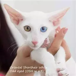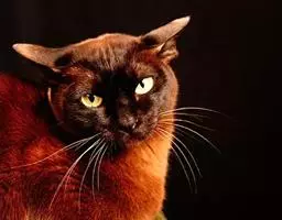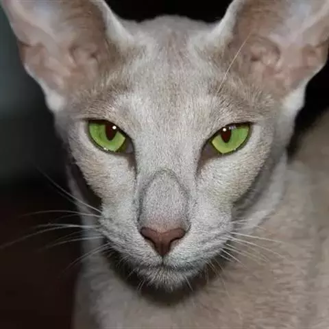 眼睛:眼大呈杏仁形,略吊眼梢;眼缘黑色,周围为褐色毛覆盖。眼色为绿、黄、淡褐等色。