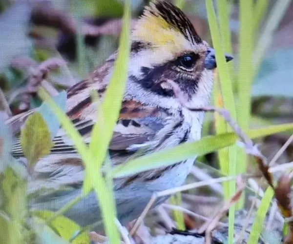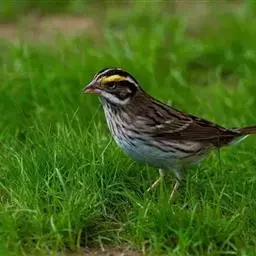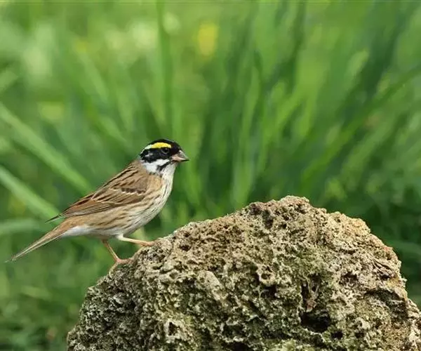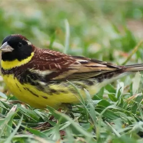 黄眉鹀(学名:Emberiza chrysophrys):体重15-24.0克,体长130-166毫米。属小型鸣禽。头顶和头侧黑色,头顶中央有一白色中央冠纹,前段较窄,到中央变宽。背棕色或红褐色,具宽的黑色中央纹,腰和尾上覆羽棕红色或栗色,两翅和尾黑褐色。下体白色,喉具小的黑褐色条纹,胸和两胁具暗色条纹。雄鸟头部黑色具条纹,有显著的鲜黄色眉纹。下体更白而多纵纹,翼斑也更白,腰更显斑驳且尾色较重。黄眉鹀的黑色下颊纹比白眉鹀明显,并分散而融入胸部纵纹中。与冬季灰头鹀的区别在腰棕色,头部多条纹且反差明显。虹膜暗褐;上嘴褐色,下嘴灰白;脚肉褐色。