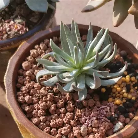 阿尔巴白月影是景天科、拟石莲花属的多年生植物、多肉植物,植株小型,叶片在阳光充足且具一定温差的适宜…