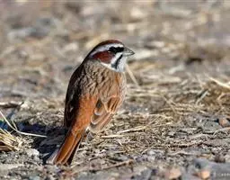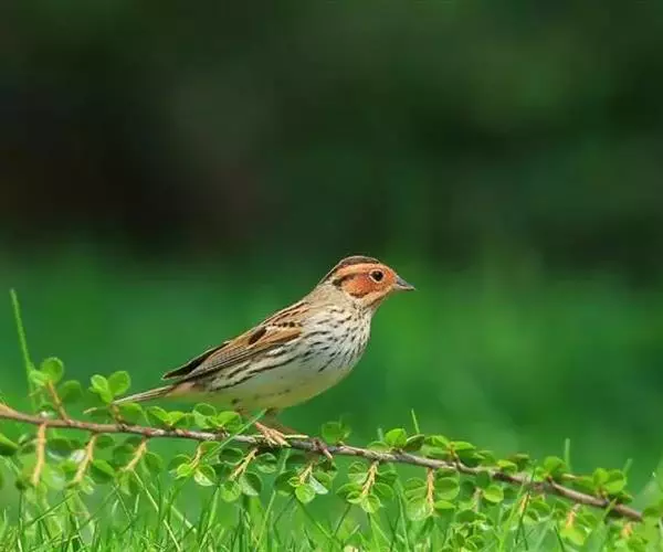 栗斑腹鹀:属小型鸣禽。体重19-25克,体长145-167毫米。头顶至背栗红色,眼先和颧纹黑褐色,…