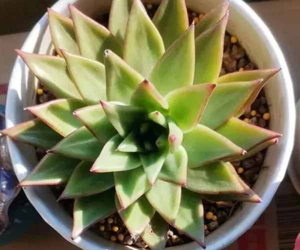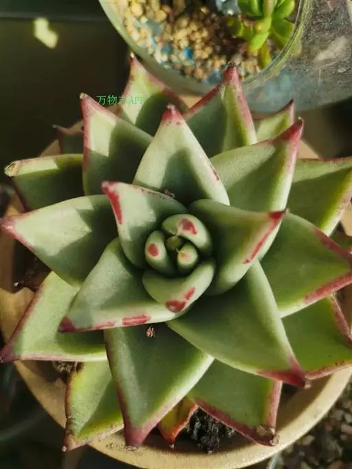 魅惑之宵(Echeveria agavoides ‘Red Edge’ )是景天科拟石莲花属的多肉植物。叶片莲座型密集排列,底座粗壮,茎干随着生长而逐渐长粗,叶片广卵形至散三角卵形,叶面光滑不易积水,背面突起微呈龙骨状,叶片先端急尖。叶色常年嫩绿色至黄绿色,春秋冬季昼夜温差大的情况下给足光照,叶缘至叶尖会大红或艳红。