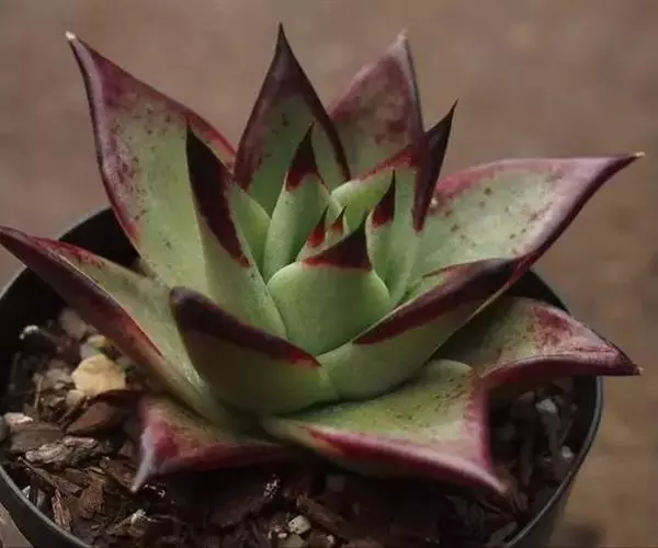 黑王子锦是景天科拟石莲花属的多年生肉质草本植物,是多肉植物的一种,为黑王子的锦化品种,较为稀有。