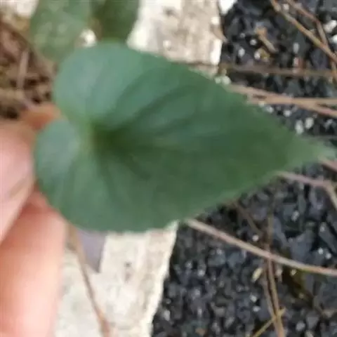 叶基生;叶片在下部者较小,呈心形,上部者较大,呈卵状心形,长6-8厘米,宽4-4.5厘米,先端渐尖,基部深心形,边缘密生浅圆齿,两面散生白色短毛,或下面无毛;叶柄长短不等,长6-11厘米,上部有极狭的翅,无毛;托叶干膜质,深褐色,披针形或宽披针形,长1-1.5厘米,边缘具长流苏状齿,无毛。