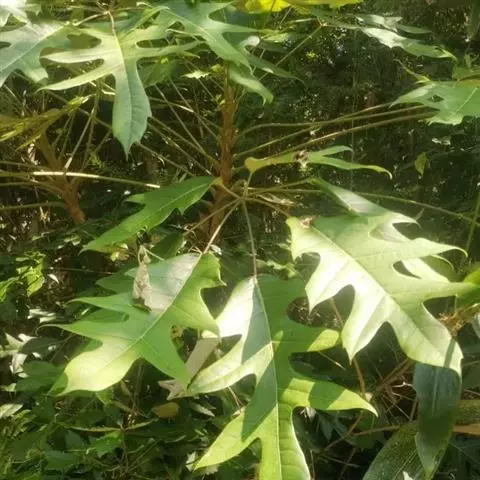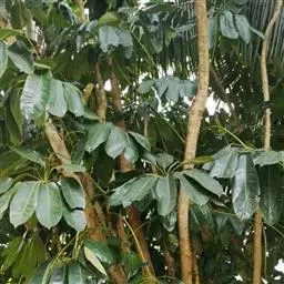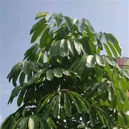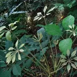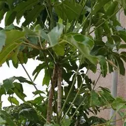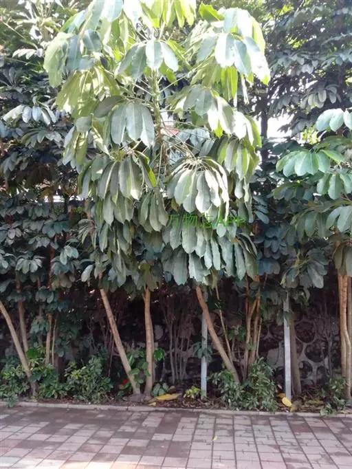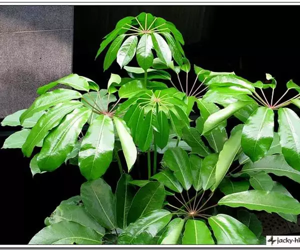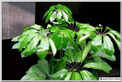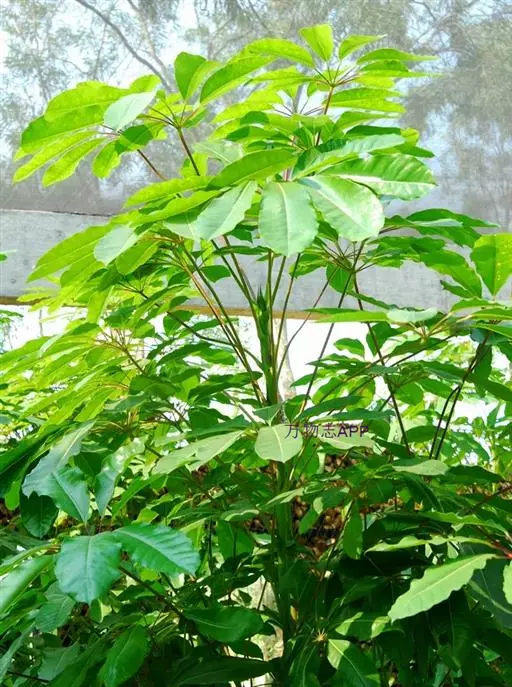 昆士兰伞木,吕松鹅掌柴 ,称昆石兰遮树,澳洲鸭脚木、方式叶鹅掌柴、伞树、大叶伞。叶片阔大,柔软下…