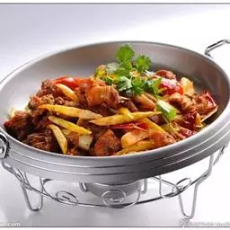 最常见又易烹制,成菜后味咸鲜,肉细嫩,色红亮,泡菜香气浓郁。牛蛙宰杀去头去皮去内脏洗净,斩成块,用盐、胡椒粉、干豆粉、料酒上浆码味。泡红辣椒去蒂去籽切成节,大葱洗净切成节,泡姜切成姜米。炒锅下油烧至七成热,将牛蛙下锅滑溜断生捞起。炒锅内下少许油烧热,下泡姜米、泡椒节炒出香味,下牛蛙,烹入料酒,放味精、大葱节簸转起锅装盘即可。