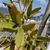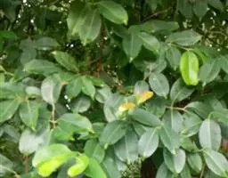 乔木,高20米;嫩枝稍压扁,干后绿色。叶片狭长椭圆形至椭圆形,长14-30厘米,宽6-13厘米,先端渐尖,基部圆形,有时微心形,上面干后绿色,无光泽,下面浅绿色,无明显腺点,侧脉15-22对,平缓斜行,离边缘4-5毫米处互相结合成边脉,靠近边缘1.5毫米处另有1条不明显的边脉,侧脉间相隔1-1.3厘米,有明显网脉;叶柄长5-10毫米。