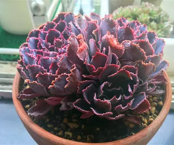 棕玫瑰是景天科拟石莲花属的多肉植物,叶片呈红棕色,新叶多呈浅绿色,龙骨明显,叶背和叶缘布满短纤毛。