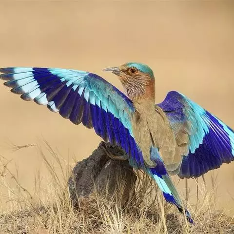 蓝胸佛法僧中型鸟类,体长31~33厘米,通体淡蓝绿色。翅膀长而宽,除栗色背羽外大部分为蓝色。…