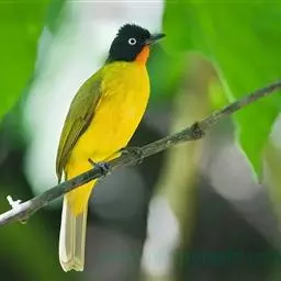 黑头鹎:体长17厘米。是一种中等体型的偏黄色鹎。特征为头辉黑、喉黑而眼蓝。上体黄橄榄色;两翼及尾偏黑,…