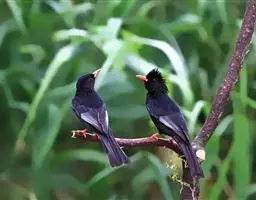 凤头雀嘴鹎:属小型鸟类,体长18-22厘米。嘴粗短、呈象牙色或乳黄色,前额和脸灰色,头顶黑色,…