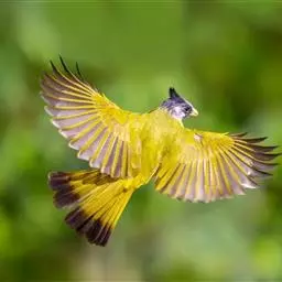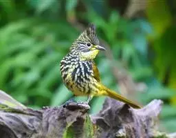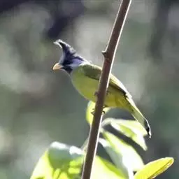 黑冠黄鹎:体长18-21厘米,是一种中等体型偏黄色鹎。整个头、颈、颏、喉黑色,头顶有显著直立的羽冠,…