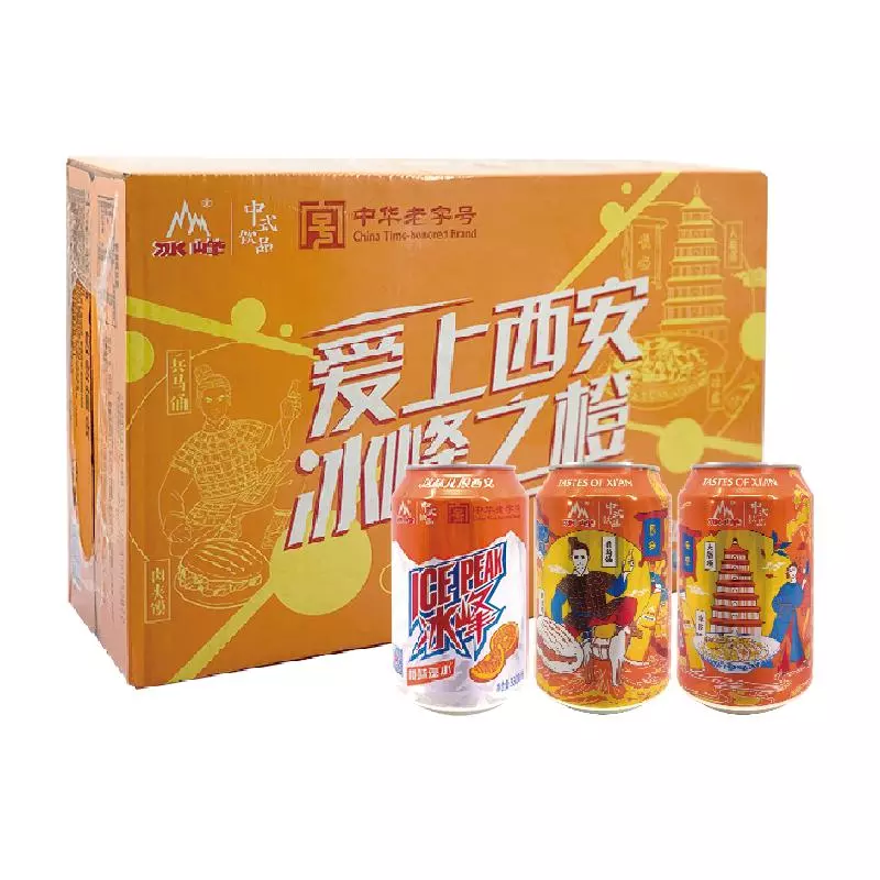 2012年4月24日,罐装冰峰通过了西安市质量技术监督局的产品检验。从2012年4月30日起,冰峰开始启用易拉罐装、易拉罐新产品定名为“冰峰易拉罐——橙味碳酸饮料”,它的外观设计延续了原玻璃瓶产品的设计风格,精美、亮丽并具有独特的包装个性。每听容量为330ml,超市价格约为2.5元/听,商店价格约为3元/听,为了细分产品冲击市场,两万箱之后罐装冰峰的口号也由原来“从小就喝它”变为“今天就喝它”。厂家首批推出的2万箱近50万罐易拉罐装冰峰,30日当天已全部被经销商批发运向市场,此次上市的易拉罐装冰峰大约在2万箱,近50万罐,主要是在西安、陕北以及一些区县销售,西安、陕北等上市量各为10多万罐。“易拉罐冰峰主要在一部分小超市、便利店、酒店等销售。西安市民在东大街、菊花园、书院门、回民街以及渭水园、动物园等主要街道或地区,都能方便买到。”