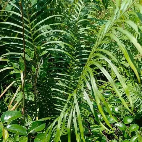 植株高18-60厘米。根状茎直立,粗短,或长而斜生,密被鳞片;鳞片披针形,长约6毫米,先端纤维状,边缘全缘或偶有少数小齿牙,棕色或中部为深褐色,有光泽,厚膜质。叶簇生,二形;柄长3-24厘米,粗1-2毫米,禾秆色,基部密被与根状茎上同样的鳞片,向上渐变光滑;叶片线状披针形,两端渐狭,长14-45厘米,中部以上宽2-(-6)厘米,一回羽状;羽片多数,篦齿状排列,下部羽片向基部逐渐缩小,基部一对成为小耳形,向上的羽片为状披针形,长1.5-3厘米,宽4-6毫米,尖头,基部与叶轴合生,边缘全缘,干后略内卷,平展,彼此接近或略疏离。叶脉不明显,在羽片上为羽状,小脉斜向上,二叉,不达叶边。叶坚革质,干后暗绿色或带棕色,无毛,上面有时呈皱褶状;叶轴禾秆色,光滑,上面有浅纵沟。能育叶与不育叶同形而较狭;孢子囊群线形,着生于主脉与叶缘之间,沿主脉两侧各1行,几与羽片等长,但不达羽片基部及先端;囊群盖纸质,拱形,与孢子囊群同形并紧孢子囊群,开向主脉,宿存。 其孢子母细胞减数分裂浓缩期有33个双价体,每个孢子囊产生64个孢子,是个有性生殖的二倍体。
