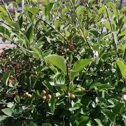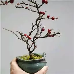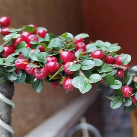 匍匐栒子因其植株生长呈匍匐状,枝叶茂盛、果实鲜艳,加以修剪造型也可作为良好的盆景材料。