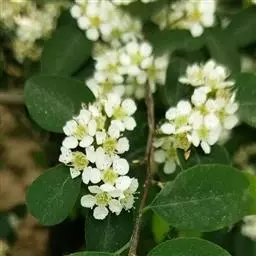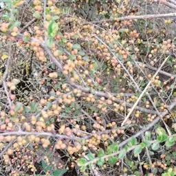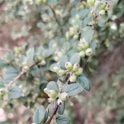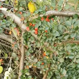 匍匐栒子与平枝栒子(C.horizontalisDcne.)的主要异点,在于后者茎水平展开,呈规则地二列分枝,叶片近圆形或宽椭圆形,稀倒卵形,边缘不呈波状,果实直径4-6毫米,有3小核。